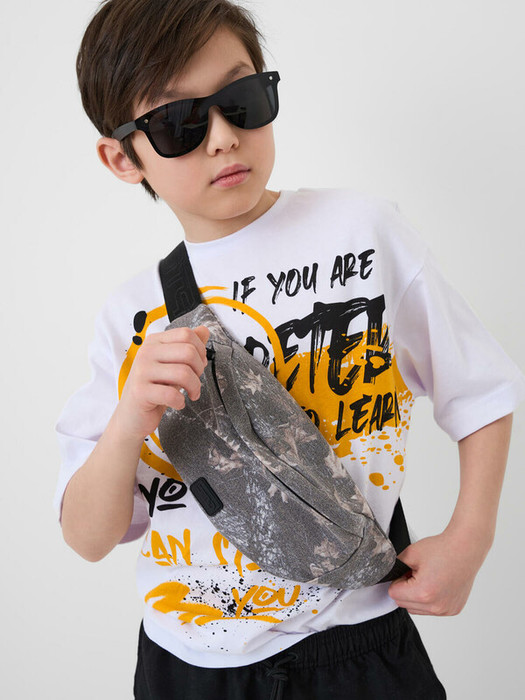 Трендовая сумка кросс-боди для мальчика-подростка. Регулируемый брендированный ремень. Основной отсек на молнии, спереди дополнительный карман на молнии, сзади карман для транспортной карты. Внутри есть карман на молнии. Параметры: высота - 18 см, ширина -13 см, глубина - 6 см.