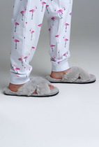 Верх тапочек выполнен из изностойкого текстиля с мягкой, приятной на ощупь поверхностью. Подкладка и стелька из трикотажа с высоким содержанием хлопка 95%.Противоскользящая подошва с защитой задней части. Конструкция с широкой липучкой позволяет легко обувать тапочки на малышей.