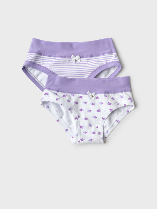 Набор из двух детских трусов-брифов для девочки. Изделия выполнены из мягкого, хлопкового эластичного трикотажа, с широкой резинкой по поясу и окантовкой по вырезам для ног. Внутри предусмотрена ластовица.