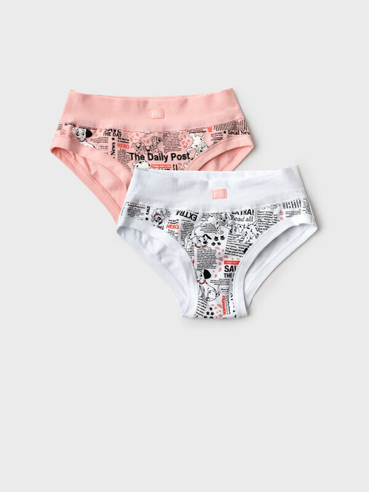 Набор из двух детских трусов-брифов для девочки. Изделия выполнены из мягкого, хлопкового эластичного трикотажа, с широкой резинкой по поясу и окантовкой по вырезам для ног. Принт с любимыми героями мультфильма "101 далматинец". Внутри предусмотрена ластовица.