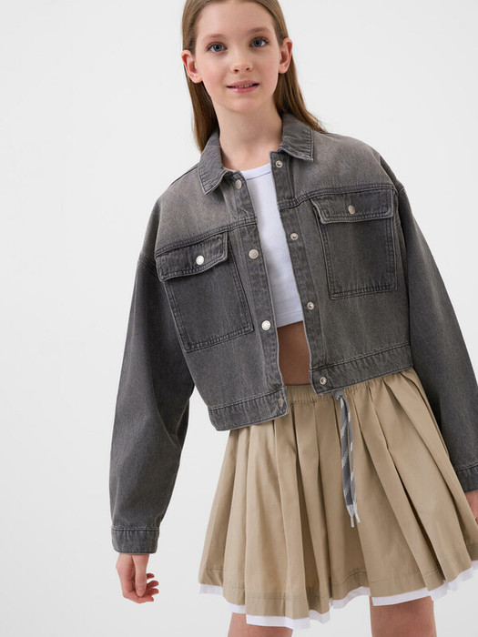 Мини-юбка для девочки подростка. Выполнена из легкой ткани и украшена складками по всей окружности. У модели эластичный пояс со шнуром для регулировки объема. Внизу юбка отделана контрастной белой полосой, придающей образу стильный вид.