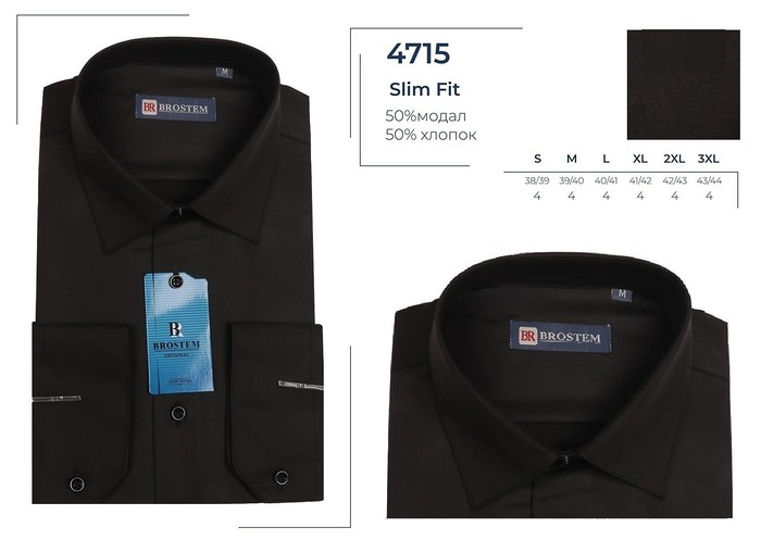 Совместные закупки Екатеринбург Мужская одежда Рубашки — ПОШТУЧНО 4715A* Сорочка мужск.полу.притал. дл. рукав, BROSTEM