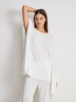 Блуза свободного силуэта из блузочной ткани. Рукав втачной, снизу присборен и окантован бейкой. V-образный вырез горловины с декоративной завязкой.