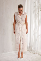 Платье с запахом фиксирующимся притачным поясом выполнено из плательной ткани. Отрезное в области талии. Лиф прилегающий. Юбка летящего силуэта. Укороченный втачной рукав со сборкой по окату.