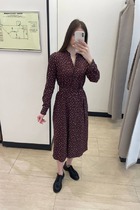 Платье из вискозной ткани с крэш-эффектом. Полуприлегающий силуэт, с разрезом в боковом шве. По среднему шву спинки застёжка на петлю-пуговицу. Круглый вырез горловины и линия проймы окантованы косыми бейками из основной ткани.