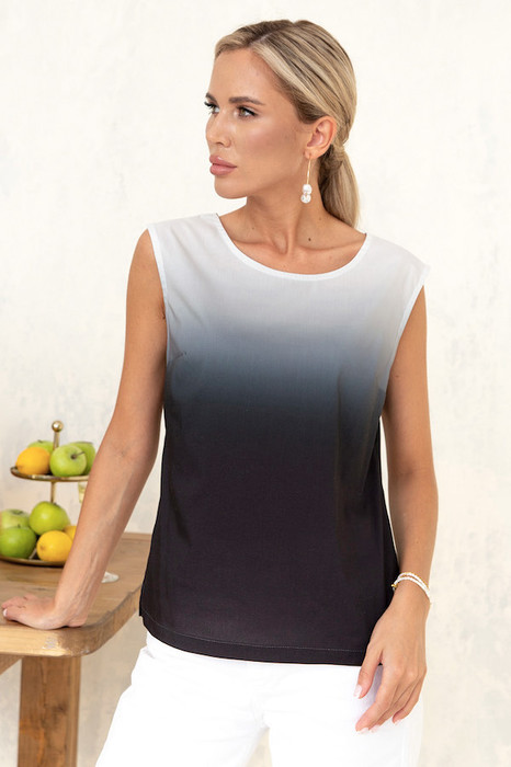 Топ из блузочной вискозной ткани. Свободный силуэт, с небольшими разрезами в боковых швах. Круглый вырез горловины.