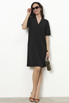 Платье свободного силуэта из вискозной ткани. Изделие по линии талии на резинке, на юбке-сборка. V-образный вырез горловины обработан отложным воротником на стойке. Втачной длинный рукав с манжетой, застегивающейся на пуговицы.