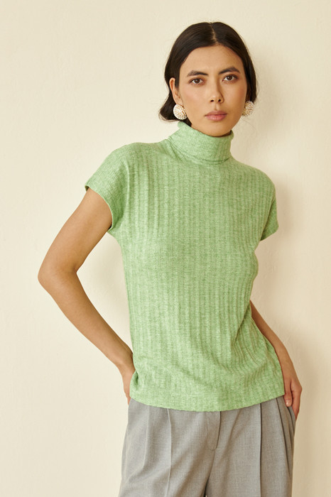 Джемпер свободного силуэта из фактурного эластичного полотна. Цельнокроеный короткий рукав. Воротник-стойка с отворотом. Женский джемпер стал незаменимой и популярной разновидностью одежды, которая может применяться буквально во всех случаях жизни.