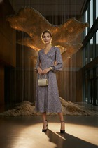 Платье из вискозной ткани с крэш-эффектом. Свободный силуэт с карманами в боковых швах. По центру передней и задней части изделия выполнен шов. Цельнокроеная стойка, переходящая в V-образный вырез горловины, визуально делает фигуру стройнее. Цельнокроеный короткий рукав. В комплекте пояс из основной ткани.