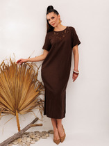 Vilatte Платье из вискозы твил D22.224 синий-бежевый
