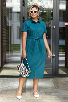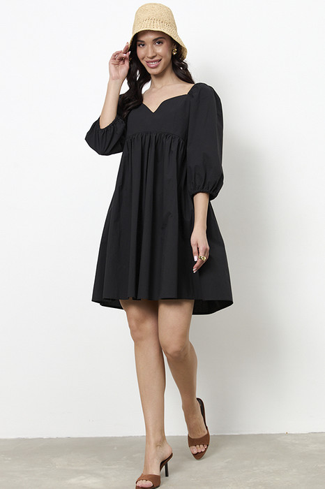 Платье свободного силуэта из хлопковой ткани. Изделие отрезное по линии талии. Линия талия завышена и фигурная. Верхняя часть юбки со сборкой. По среднему шву спинки потайная молния. Лиф переда и спинки двухслойный, имеет рельефные швы. Окат рукава и низ рукава зафиксированы резиной.
