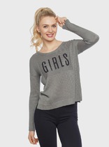 Джемпер свободного силуэта. Длинный рукав-реглан, чуть расширенный книзу. Круглый вырез горловины оформлен резинкой, низ изделия и низ рукава-высокой резинкой. Изделие выполнено из мягкой меланжевой пряжи.