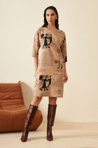 Платье полуприлегающего силуэта из плательной ткани. Круглый вырез горловины. Спинка со средним швом, снизу разрез. Рукав втачной в спущенную пройму. В таблице размеров представлены параметры человека, а не изделия.