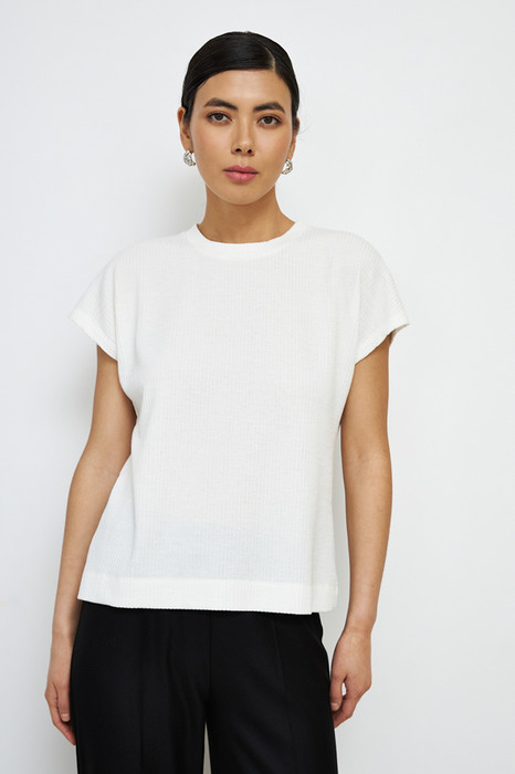 Джемпер свободного силуэта из фактурного эластичного полотна. Цельнокроеный короткий рукав. Круглый вырез горловины оформлен бейкой. Женский джемпер стал незаменимой и популярной разновидностью одежды, которая может применяться буквально во всех случаях жизни.