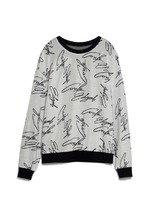 Джемпер свободного силуэта из эластичного полотна. Вырез горловины оформлен бейкой из основной ткани. На передней части изделия выполнена аппликация. Втачной длинный рукав.
