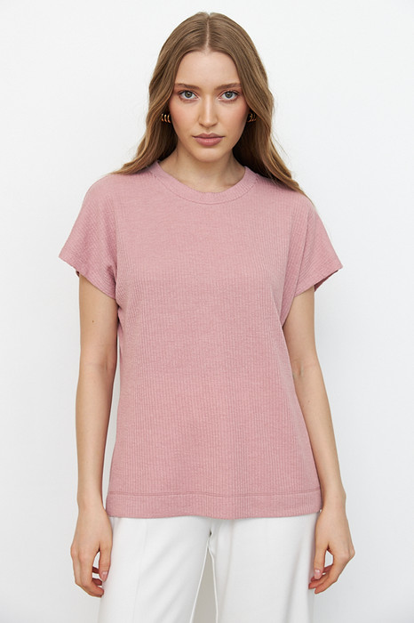 Джемпер свободного силуэта из фактурного эластичного полотна. Цельнокроеный короткий рукав. Круглый вырез горловины оформлен бейкой. Женский джемпер стал незаменимой и популярной разновидностью одежды, которая может применяться буквально во всех случаях жизни.