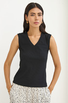 Платье из вискозной ткани с крэш-эффектом. Полуприлегающий силуэт, с разрезом в боковом шве. По среднему шву спинки застёжка на петлю-пуговицу. Круглый вырез горловины и линия проймы окантованы косыми бейками из основной ткани.
