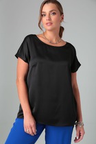Рубашка из хлопковой ткани свободного силуэта с застёжкой на планке. Низ изделия асимметричной длины (спинка удлинена относительно переда) с закруглениями по бокам. Вырез горловины обработан отложным воротником на стойке. Рубашечный рукав на манжете с застёжкой на пуговицы. На задней части изделия выполнена кокетка с небольшой складкой. Достоинство этой модели - в способности скрыть некоторые недостатки фигуры. Её можно сочетать как с брюками, так и с джинсами.