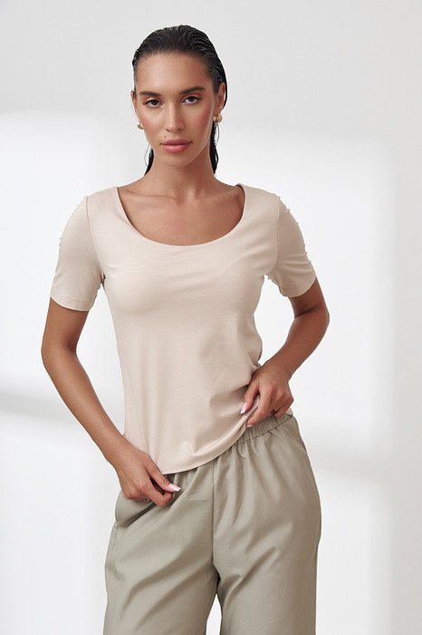 Двухслойный джемпер полуприлегающего силуэта из вискозного эластичного полотна. Втачной короткий рукав, круглый вырез горловины. Благодаря двухслойности переда и спинки изделие скрывает мелкие недочёты фигуры и делает силуэт более ровным. Актуальный джемпер придаст совершено особое звучание и строгим классическим брюкам, и нарядной юбке и даже спортивному костюму. Его легко применять для создания разных образов.