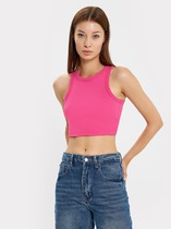 Топ на лямках из эластичного полотна в рубчик. Прилегающий силуэт. Линия горловины и линия проймы окантованы эластичной бейкой.