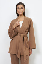 Платье из хлопкового эластичного полотна. Свободный силуэт с разрезами в боковых швах. Короткий втачной рукав в спущенную пройму. Вырез горловины оформлен бейкой.