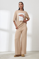 Брюки прямого силуэта из вискозной ткани с крэш-эффектом. Пояс с эластичной резиной и кулиской, в боковых швах карманы.