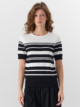 Джемпер свободного силуэта со спущенной линией плеча и рукавом до локтя выполнен из эластичного полотна. Вырез горловины оформлен бейкой из основной ткани. В таблице размеров представлены параметры человека, а не изделия.