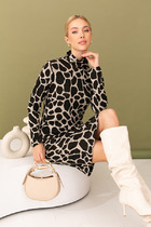 Vilatte Платье на запАх из вискозы с принтом D22.259 белый-черный