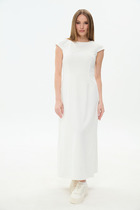 Свитшот свободного силуэта из эластичного полотна. Круглый вырез горловины оформлен бейкой. Рукав реглан с горизонтальным швом в области локтевого сгиба. По низу изделия и рукавов выполнены притачной пояс и манжеты из основной ткани. В таблице размеров представлены параметры человека, а не изделия.
