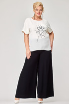 Брюки из вискозной ткани свободного силуэта. Пояс с эластичной резиной, в боковых швах карманы.