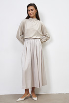 Юбка из вискозной ткани свободного силуэта со складками по линии талии. Пояс с эластичной резиной.