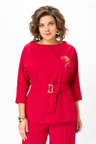 Блуза из вискозной ткани свободного силуэта. Низ изделия асимметричной длины (спинка удлинена относительно переда) с разрезами в боковых швах. Втачной рукав в спущенную пройму. Круглый вырез горловины оформлен косой бейкой из основной ткани.