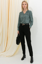 Джемпер свободного силуэта. Низ изделия асимметричной длины (спинка удлинена относительно переда). Длинный рукав-реглан. Круглый вырез горловины, низ изделия и низ рукава оформлены резинкой. Изделие выполнено из мягкой пряжи.