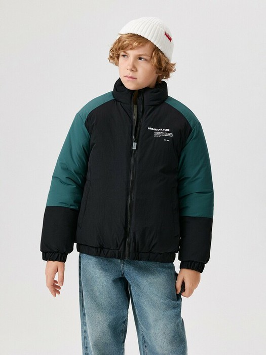 Детская утеплённая стеганая куртка для мальчика выполнена из водонепроницаемой ткани с жатым эффектом, который придает модели визуального интереса. Куртка колор-блок утеплена синтепоном (вес — 250 г/м2), что делает комфортным ношение при температуре от +10 до -10 градусов. Подкладка выполнена из стандартной подкладочной ткани. Спереди расположена центральная застёжка на молнию с внутренней ветрозащитной планкой и защитой от защемления подбородка. Короткий воротник-стойка закрывает горло и избавляет от необходимости носить шарф. Низ изделия и рукавов с эластичной лентой, обеспечивающей плотное прилегание к телу и предотвращение продувания. Спереди расположены два кармана, в которых можно хранить перчатки или греть руки. На спинке расположен принт с номером спортивного игрока, а на груди надпись "URBAN CULTURE | ENJOY THE DAY A DAY, PURSUING YOU DREAMS WITHOUT LIMITS. DO KIND THINGS THEY DON'T EXPECT YOU TO DO | EST 2009" англ. - "Уличная культура | Наслаждайся каждым днем, преследуя свои мечты без ограничений. Делай добрые дела, которых от тебя не ждут| с 2009 года". Расцветка в стиле колор-блок делает модель уникальной и неповторимой. Куртка представлена в двух цветах: черно-бежевом и черно-зеленом.