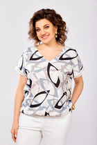 Стильная блузка с круглым вырезом горловины и нагрудными вытачками. По переду и спинке отрезная по линии талии. Нижняя часть блузки с ассиметричным фигурным низом как спереди, так и сзади и функциональной застежкой на петли пуговицы.  Рукав в тачной длинной за локоть.