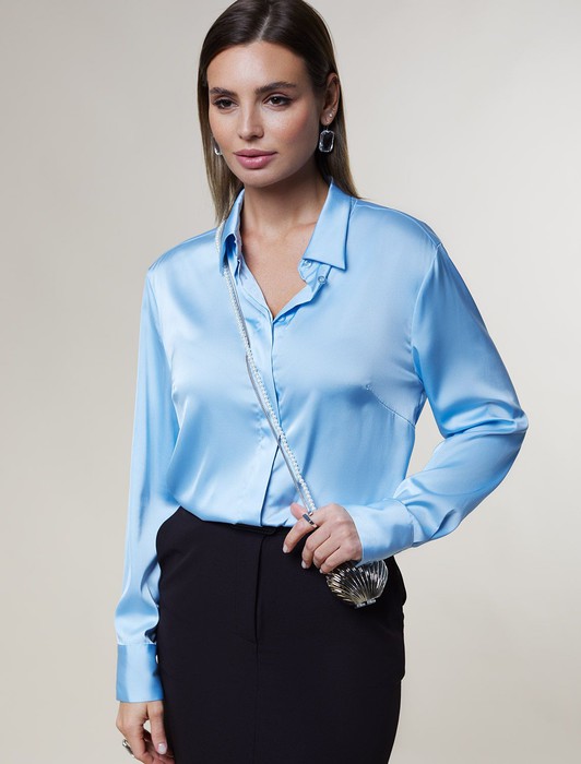 Состав: 94%ПЭ 6%ПУ Плотность: 110 Г/м2 Параметры модели на первом фото: Рост 170, бюст 89, талия 63, бедра 92Блузка прямого силуэта выполнена из эластичного струящегося сатина.. Невероятно женственная модель в тренде на пижамный стиль, изящно струится и драпируется по фигуре, напоминая натуральный шелк. Лаконичный дизайн поддерживает застежка планка на потайные пуговицы. Сочетайте изделие с жакетами и строгими брюками, внося в образ легкое настроение.