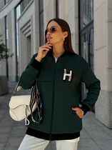 Жакет - бомбер женский, прямого силуэта, со спущенной линией плечевого шва, выполнен из трикотажногосетчатого полотна.