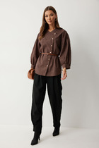Широкие брюки в классическом черном цвете сочетают в себе элегантность и удобство и станут эффектной детальюбазового гардероба. Своболный крой не ковыает движений, а завышенная талия подчеркнут фигуру. Складки доавляют образу элегантность. Застёжка  на потайные  кнопки без лишнего визуального шума.
