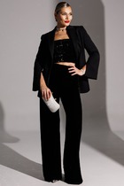 Брюки выполнены из эко кожи, на притачном поясе, зауженные к низу. По переду гульфик, застёжка на пять прорезных петель и пуговиц, фигурные накладные карманы. По спинке в пояс продета широкая резинка и накладные карманы. Украшает брюки двойные контрастные отделочные строчки.