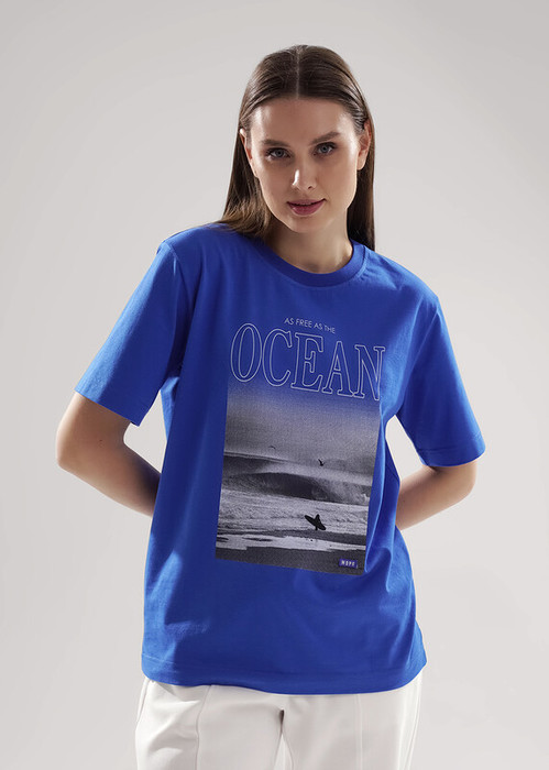 Футболка для дома и отдыха прямого силуэта из хлопкового трикотажного полотна. Округлая горловина с обтачкой из рибаны. Короткий втачной рукав. На детали переда принт, нашивка.