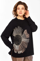 Джемпер женский свободного силуэта со спущенными плечами. По переду подрезы. Горловина круглая. Рукава одношовные втачные на манжете. Украшает джемпер печать.