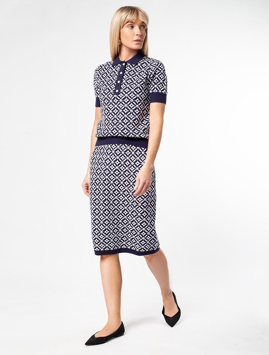 Состав: 50%Вис 30%ПЭ 20%ПА Параметры модели на первом фото: Рост 172, бюст 88, талия 64, бедра 88Юбка карандаш выполнена из эластичной поливискозы. Жаккардовое переплетение с геометрическим узором и прямой силуэт визуально стройнят и делают фигуру гармоничной. Мягкое и приятное изделие совершенно не колется и приятное к телу. Сочетайте в костюме с джемпером-поло D39.634 или жакетом D31.388. А также как самостоятельный элемент в комплекте с белой блузкой или светлым жакетом.