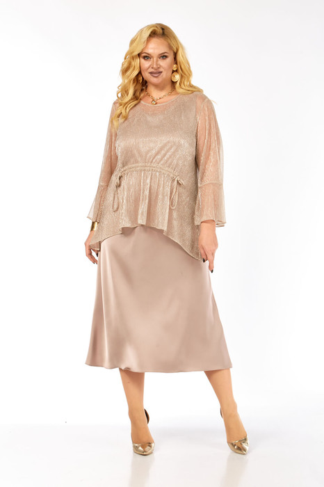 Уникальное платье, сочетает в себе изысканный дизайн. Модель платья подчеркнет вашу красоту и универсальность. Модель состоит из двух изделий платье и блуза. Платье полуприлегающего силуэта, длина миди Блуза выполнена из воздушной ткани, оно обладает свободным силуэтом, которая нежно обволакивает фигуру, создавая неповторимый образ. Горловина округлой формы. Эффектный втачной рукав, расширенный к низу. Блуза легко драпируется и очень выгодно и дорого подчёркивает образ, низ изделия асимметричный. Идеально подходит для торжественных выходов и не только!