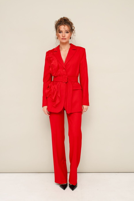 Комплект 2-предметный, состоящий из жакета и брюк, выполненный из костюмной ткани.