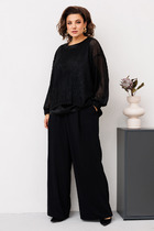 Брюки длинные, расширенные к низу, на притачном поясе с резинкой. В боковых швах обработаны карманы с наклонным входом.