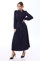 Верхняя часть платья - блузка свободного силуэта с асимметричной линией низа. Горловиной округлой формы. Перед с нагрудными вытачками. По спинке разрез и застежка на навесную петлю и пуговицу. Рукав широкий втачной длинный на завязках.
