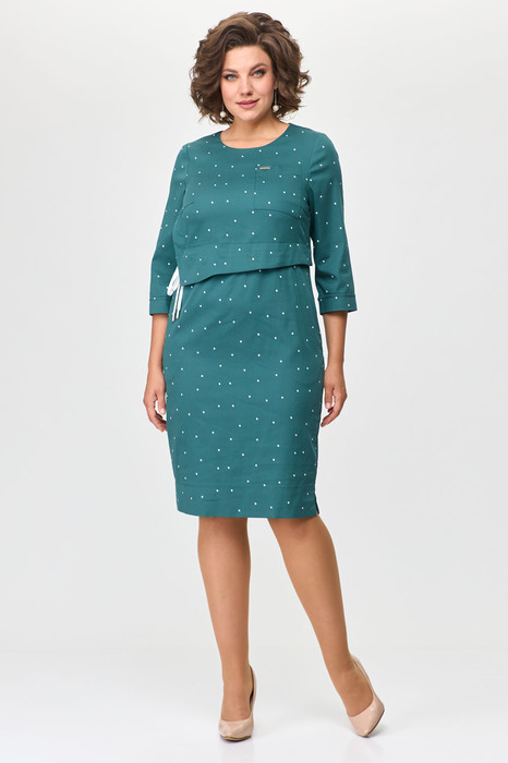 Элегантное женское платье выполнено из хлопковой ткани. Платье полуприлегающего силуэта с отрезной линией талии. Лиф выполнен в виде отлетной детали по низу. Горловина круглая, по линии талии кулиса с декоративным шнуром. По юбке в боковых швах карманы, понизу небольшие разрезы. Рукава втачные, 3/4. Платье без подкладки.