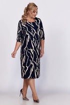 Платье женское приталенного кроя выполнено из тканей-компаньонов. По полочке платья расположена декоративная кокетка с молнией. Застежка разъемная молния по переду. Рукав-втачной длинный с патой. Горловина-стойка.