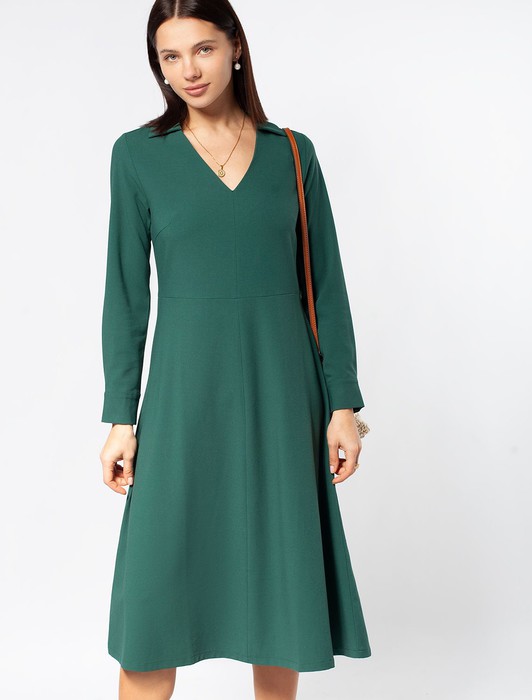Состав: 63%ПЭ 33%Вис 4%ПУПлатье приталенного силуэта и воротником-поло. Выполнено из эластичного крепа. Универсальная модель и трендовый крой в стиле 70-х годов, выгодная инвестиция для повседневного образа, деловой встречи или вечернего выхода. Можно носить с поясом, чтобы дополнительно подчеркнуть талию и А-силуэт.