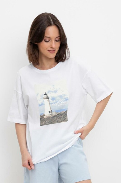 Удлиненная футболка из 100% натурального хлопка. Свободные рукава со спущенной линией плеча создают объём и свободный силуэт. Принт изготовлен из стойких текстильных красителей.